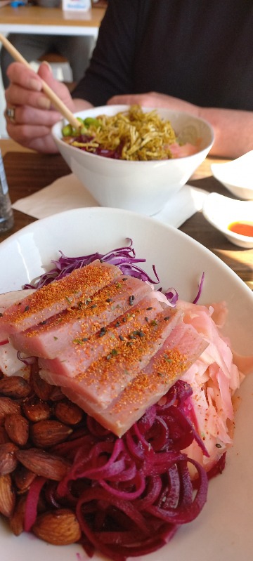 Had a couple of cocktails with a POKE Bowl, tried for first time and probably a bit healthy for me.