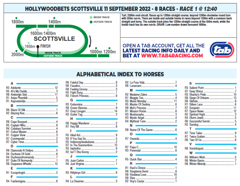 Re: HOLLYWOODBETS SCOTTSVILLE SUNDAY 11 SEPTEMBER 2022