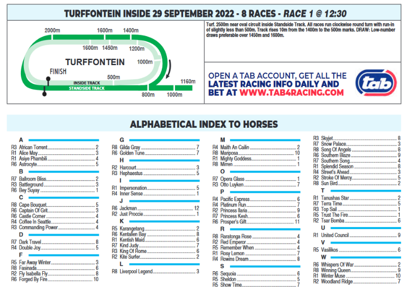 Re: TURFFONTEIN THURSDAY 29 SEPTEMBER 2022