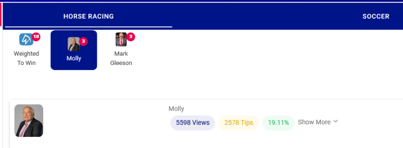 The click TIPSTERS and the wee picture of that day's tipster it gives there winning percentage