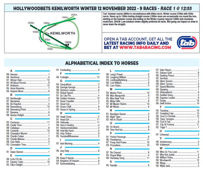 HOLLYWOODBETS KENILWORTH SATURDAY 12 NOVEMBER