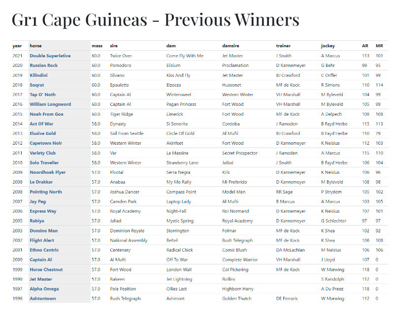 Re: FINAL FIELD Hollywoodbets CAPE GUINEAS (Grade 1)