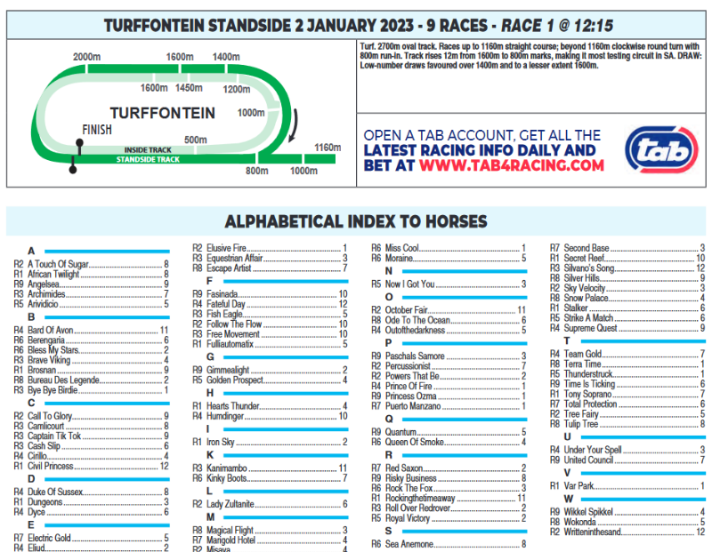 Re: TURFFONTEIN MONDAY 02 JANUARY