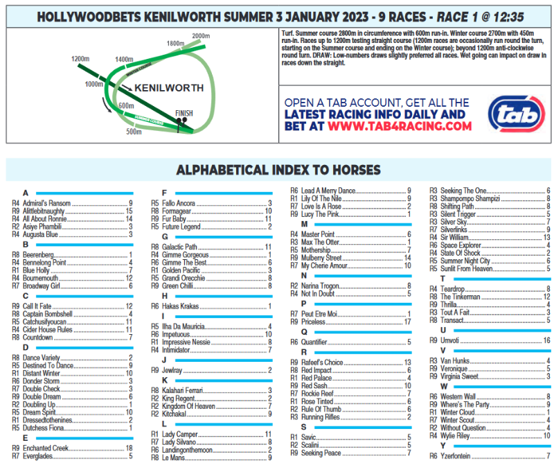 Re: HOLLYWOOD BETS KENILWORTH TUESDAY 03 JANUARY 2023