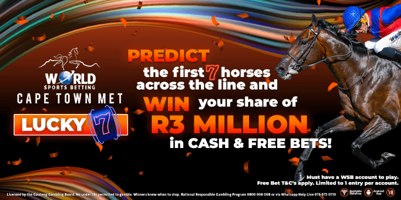 Predict the first 7 horses across the line in the WSB MET and WIN your share of R3 million in Cash & Free Bets!