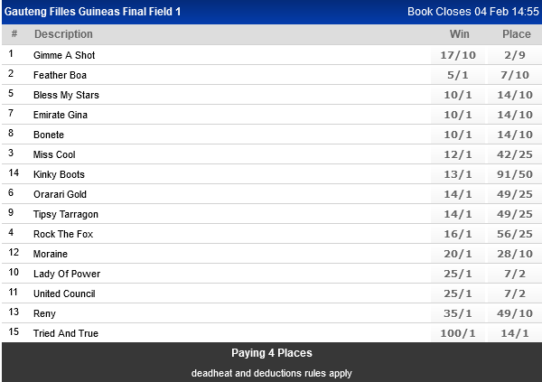 Re: Re:WSB & Wilgerbosdrift Guineas Final Fields
