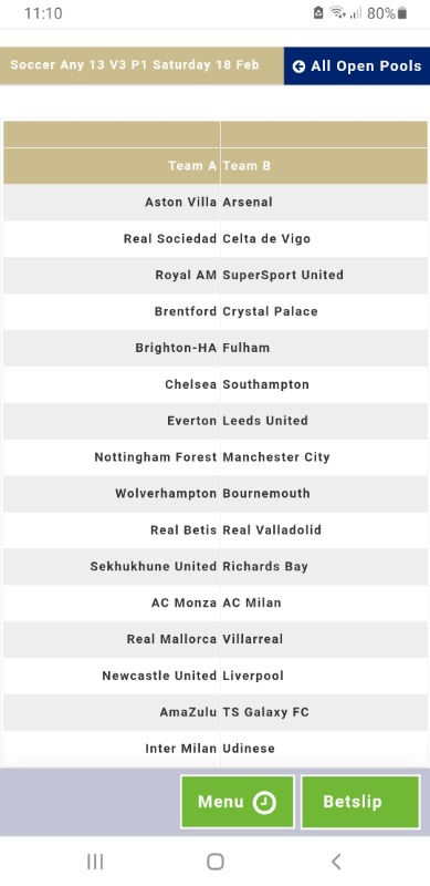 Soccer Any 13 on Betontab / Betontab.mobi Non Functional