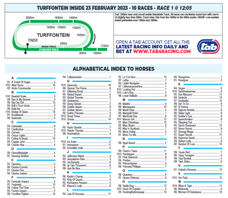 Re: TURFFONTEIN THURSDAY 23 FEBRUARY