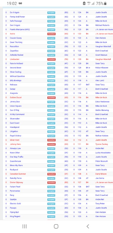 Re: First Entries for the Hollywood Durban July Tuesday 18 April - Early pics