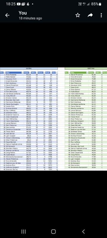 Have a look at the leaderboard and the progressive standings.