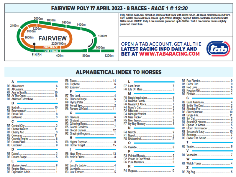 Going for an all to come today. Watch Tower in the 1st....should be a penalty kick. Grazinginthegrass in the 2nd and a very much in form Richard Fourie seems to have a special bond. Al Qaasim in the 6th bids for a hat trick and with the booking of Louis Mxothwa, who's a very strong rider, i feel he will get the hat trick.