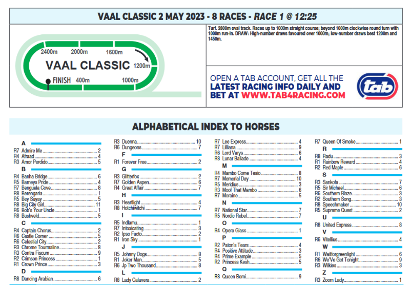 Re: VAAL CLASSIC TUESDAY 02 MAY 2023
