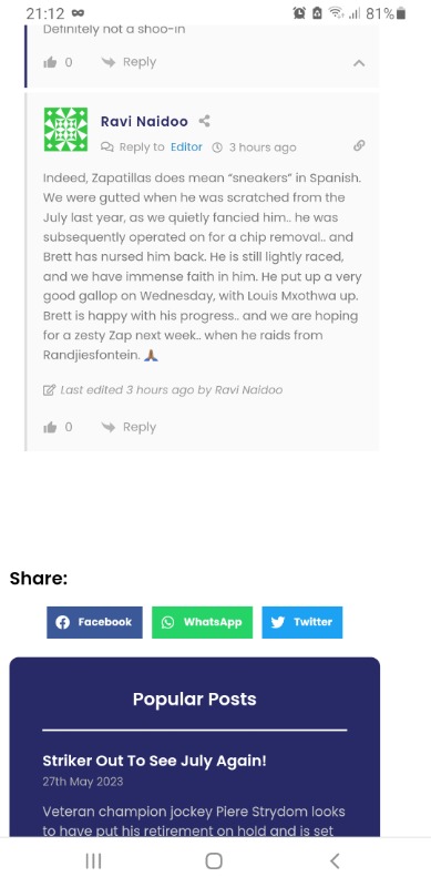 Screenshot from Sportingpost. Mr Naidoo also owns Cousin Casey. He has posted on ABC before.