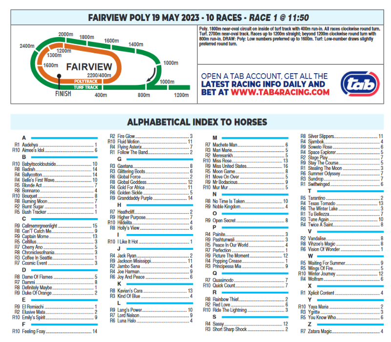 Race 6 Most haven't run on the poly so an upset possible. Vision of Wonder, Luna Halo and Golden Sickle have the strongest form.