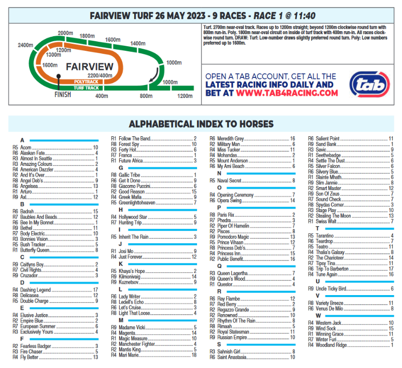 on turf to the Polytrack. Races 2,3 and 4 will be run over 1300m. Race 5 being a Feature