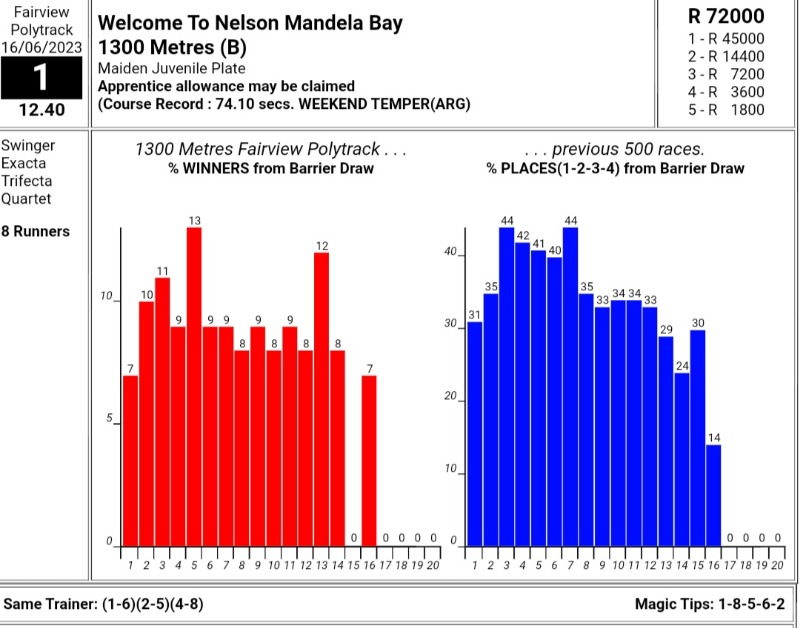 The Winning Form as previously stated shows the winning percentages from barrier draws. Below is for Fairview, 1300m.