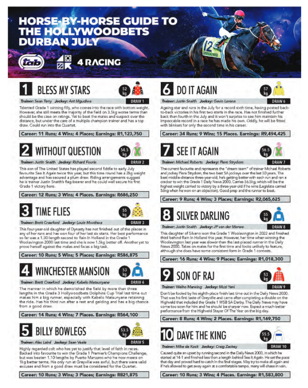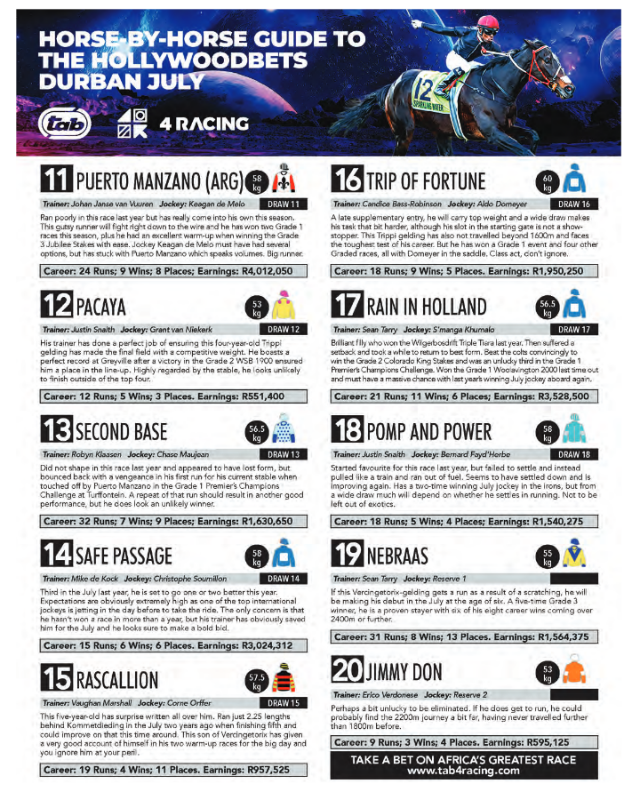 FINAL FIELD HOLLYWOODBETS DURBAN JULY