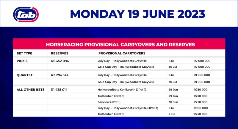 There is currently R6.4 million odd in reserve for the Pick 6.