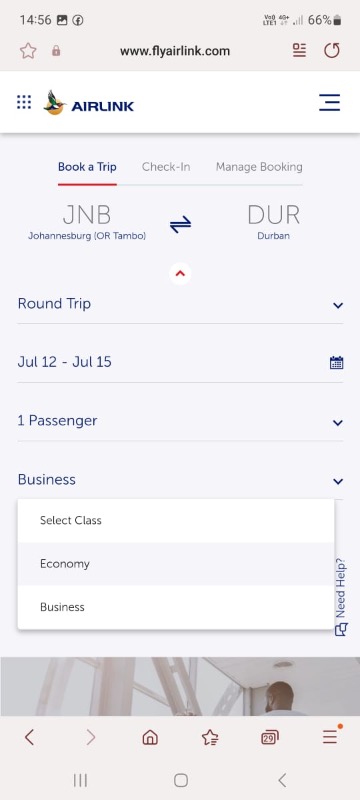 Does Airlink have a business class section to Durban Mark, or is it simply all Economy and you and this senior person have as usual their knickers in a knot?