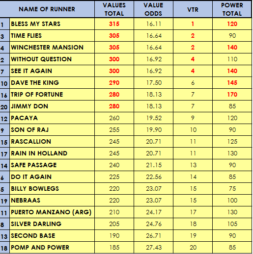 Straight out of the box selections by my software for Race 7 the Durban July main event. Don't know how that happened (told you yesterday the software was on dope) but there you have it, the longest priced horse, (at the time of checking the odds, she was 90-1) #1 Bless my Stars on top with #3 Time Flies followed by Winchester Mansion, Without Question and See it again. Please note the VTR ratings are 1/2,2/4,4 so it can't separate runners 2,3 and 4,5. Also the ratings are very close (showing how competitive the race is and how closely matched the runners) all the way to Jimmy Don 35pts separating those top 8 then a drop by 20 pts.