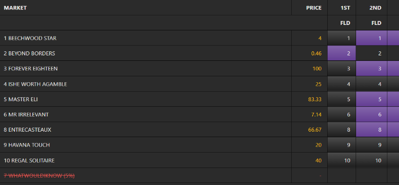 [Bob, I posted a load of piffle ... I saw saddle cloth 7 run 3rd ... but was actually number ONE {hits self on head with stewpid stick}
