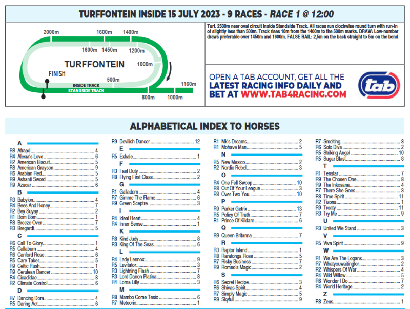 Re: TURFFONTEIN SATURDAY 15 JULY 2023
