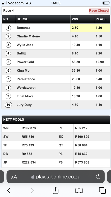 even with TOP jock Bernard on.... surely a FALSE FAV. ???