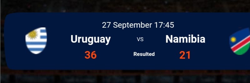 My guess for Uruguay - Namibia was 45-25 so 833 points...