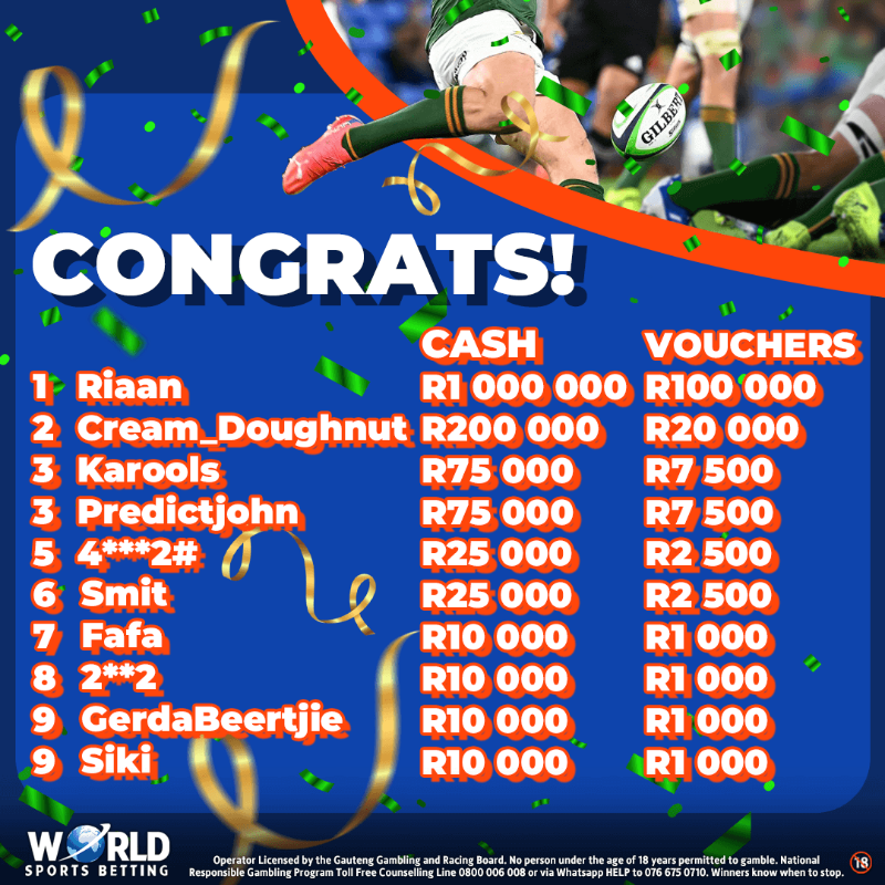 Re: World Sports Betting R10 MILLION Rugby World Cup predictor