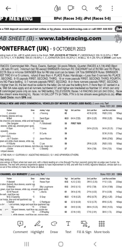 We hear from Candice re: runners for entire race meeting .....