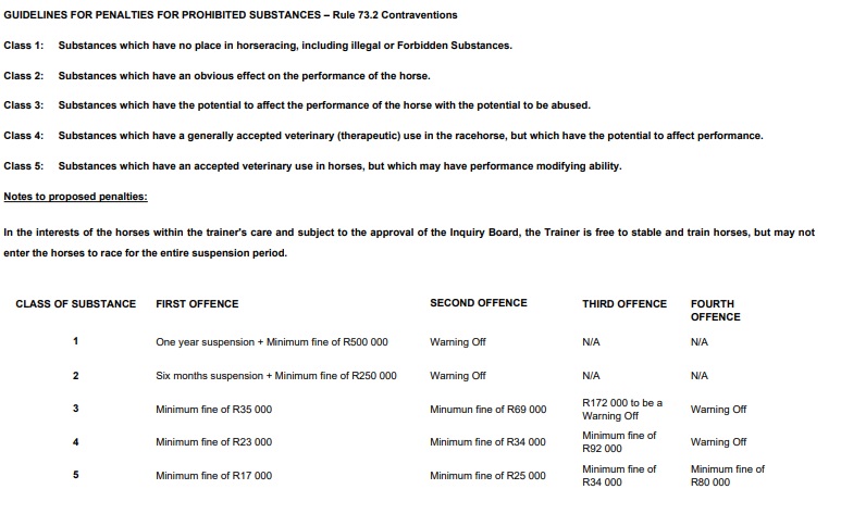 The particulars of charge one in relation to a contravention of Rule 73.2.4, was that Mr Muscutt, who was the trainer of BEVIES DELIGHT which participated in Race 7 at Hollywoodbets Greyville Racecourse on 17 September 2023 after which a specimen was taken from this horse after the race, and found upon analysis, to contain a forbidden substance, namely the steroid, Trendione. Mr Muscutt initially entered a plea of not guilty to this charge, but subsequently pleaded guilty.