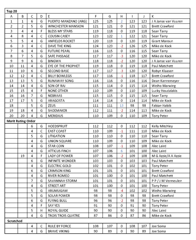 Cousin Casey, who made his Highveld debut for his new yard, has jumped up four places on the log to fourth, with third-placed Charity Mile finisher Bless My Stars now in third spot.