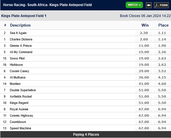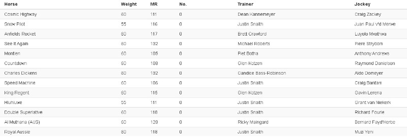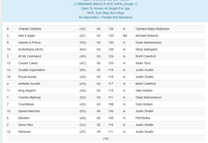 Re: ENTRIES L'ORMARINS KING'S PLATE
