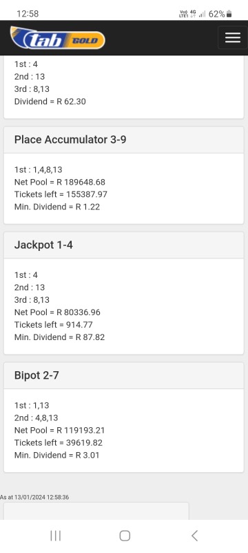 Re: TURFFONTEIN SATURDAY 13 JANUARY 2024