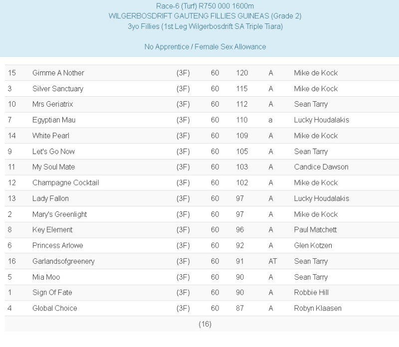 Nominations Gauteng and Fillies Guineas 3 Feb 2024