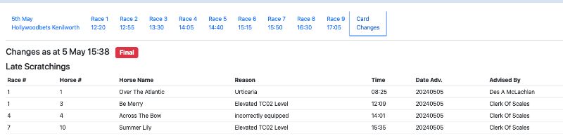 I see the limit was upped to 37 from 36 yesterday (trainers requested 38)