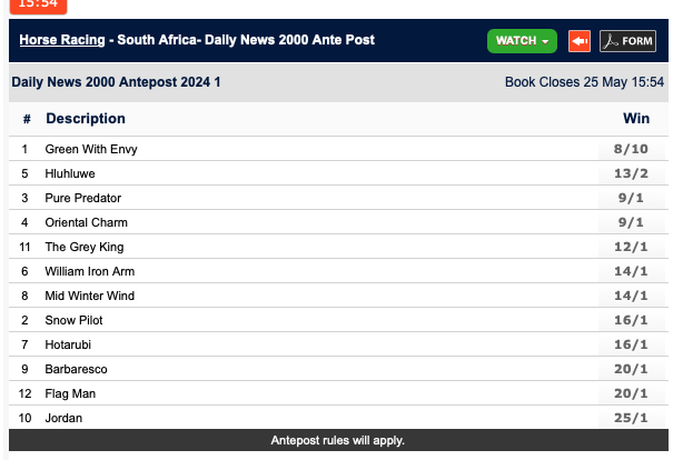 Please Note: Supp Entries Closes : 11:00 Friday 17 May 2024 Declarations Closes : 11:00 Tuesday 7 May 2024
