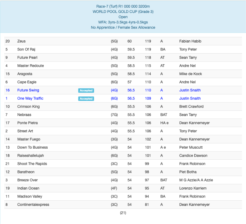 At first glance one has to think that Future Pearl is the right one in the Gold Cup - but he will be giving Future Swing 3 kgs (who is much better weighted here than in the July - and ironically at a bigger price) - so imo FP at 13/10 imo far too short - would rather have a stab at Future Swing at 16s