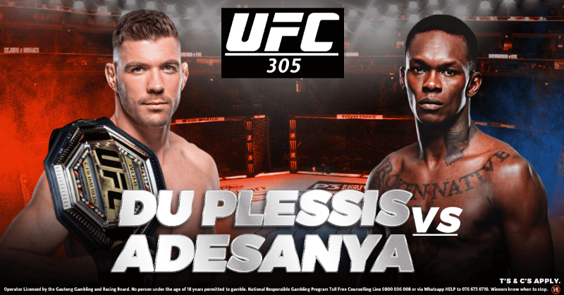 The eagerly anticipated UFC 305 card, featuring South African Dricus Du Plessis takes place in Perth at the RAC Arena on Sunday the 18th of August. South Africans will need to get up early with the Du Plessis Adesanya bout scheduled for a 05h20 start.We look closely at the main event where Dricus Du Plessis defends his title against Israel Adesanya, as well as 2 other fights on the card from a betting perspective. Click here to bet on the full fight card