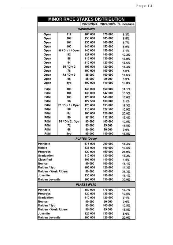 Betway has also increased the stakes for several other races throughout the season. Overview of the increases are illustrated on the table below and brochure pages are