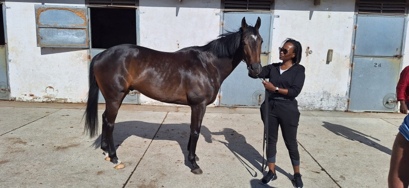 Thank you Dave , lovely article and thank you George my partner in the " russian mafia horse", the legend El Romiachi. Our boy is ready to go , looks amazing and if he can do the unthinkable and win his 100th start on friday he will make our dreams come true. We had the privilage of having a very special visit to the stable last week thursday, and she just wanted to see her most favorite horse , none other than CEO of 4Racing Fundi Sethebe and she gave the go ahead to have something special on his saddle cloth on raceday.