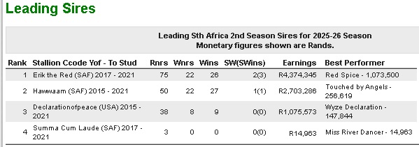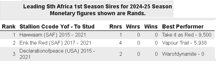 Re: Hawwaam leads 1st season sires 2024/2025 season