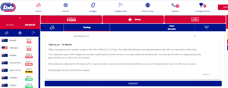 1 year 1 month agoThey sent a notification......the new tote site is up again this morning.....and I read in SP that the old site gets an extension to 16 April.....but no explanation on what had caused the crash....oh my
