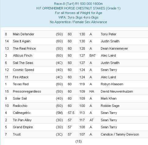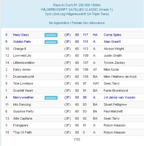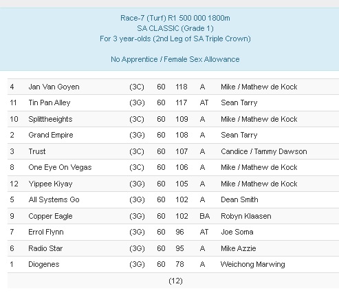 Littlemissmillion should be a decent price from the wide draw in the sa fillies classic