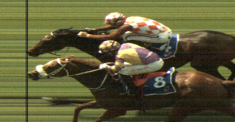 I though they use the Wimbledon system to look at photo finishes. On the below pic even thought the number 8 jock bum and head and horse bum are in front the number 4 horse nose is in front on that pic. Jockey on 4 is stretched out. Anyways that is my minority report.