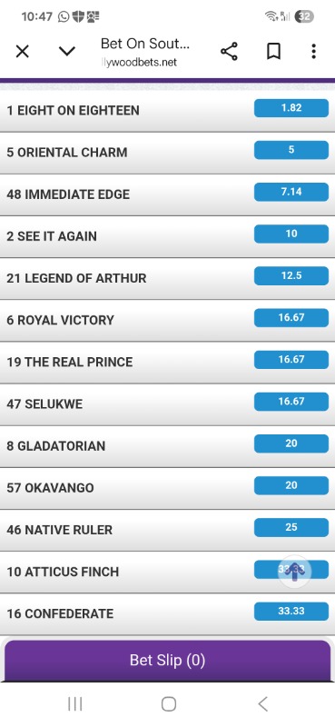 10 months 2 weeks agoFor the main race 8 on 18 won't lose ..best to get on to early price ...there was a huge fight at the course between tarry and Fourie..tarry wanting Fourie to ride his horse...Fourie refuses says his staying on 8on18...tarry trying to get Lyle hewitson to come down from Hong Kong.. I think 8on18 should win this by 3lths