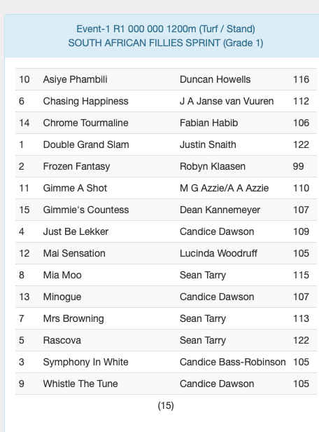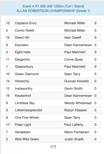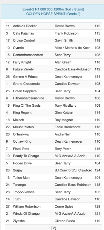 Re: ENTRIES SPRINT DAY SCOTTSVILLE