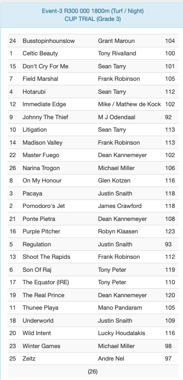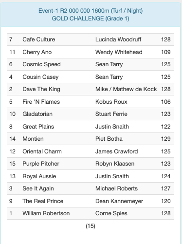 Re: ENTRIES HOLLYWOODBETS GOLD CHALLENGE