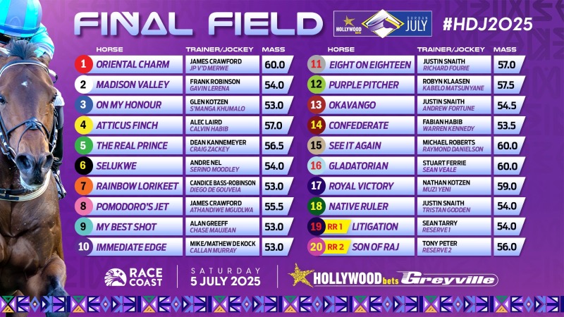 Final Field Hollywoodbets Durban July
