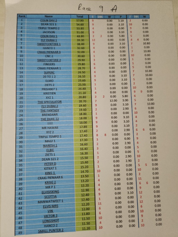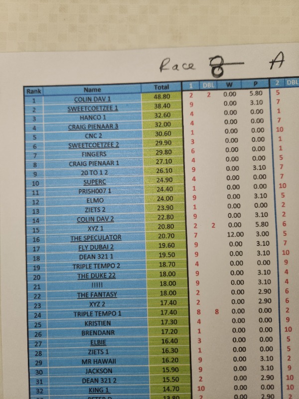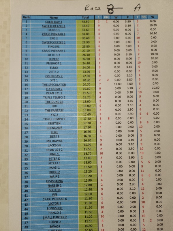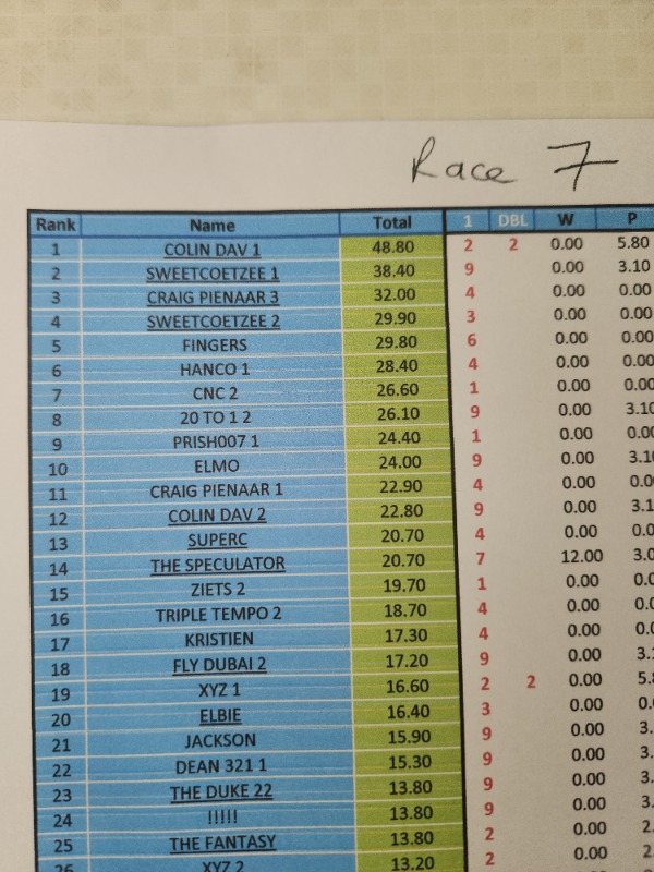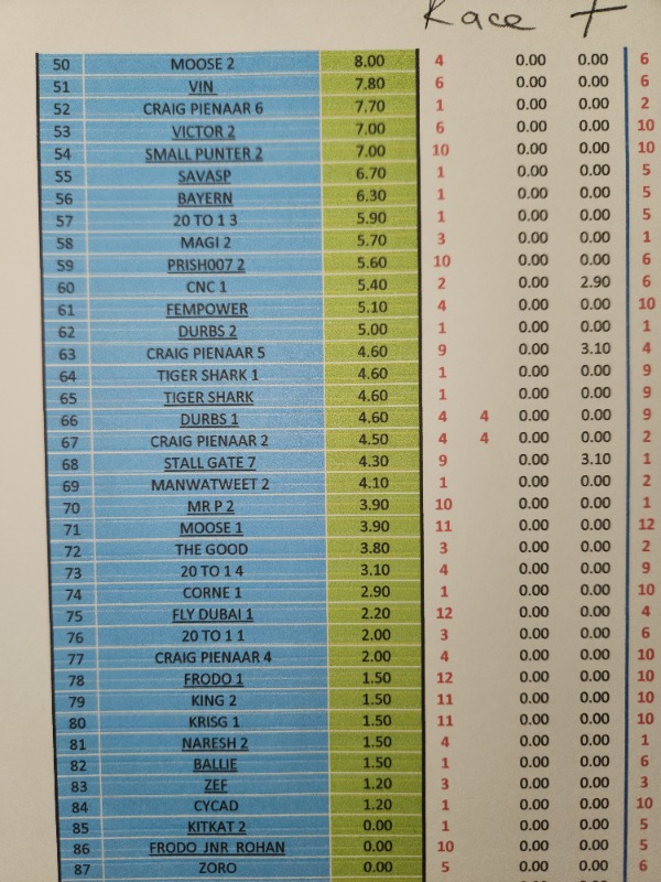 Re: RESULTS - COMPETITION DURBAN JULY